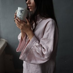 Handmade, klänning i 100 % linne, med långa ärmar och knappar framtill. Klänningen har en smickrande passform med rynkad midja och en utsvängd kjol som faller elegant. Den har en rundad halsringning och är perfekt för både vardag och mer uppklädda tillfällen.