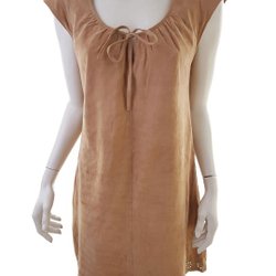 BZR Storlek M Beige Knälängd Raka Klänningen