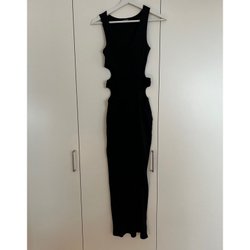 Grå, figurnära klänning med fyrkantig halsringning och korta ärmar. Klänningen har en slits på ena sidan.