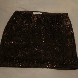 Svart klänning med långa puffärmar och rynkdetaljer på kjolen. Klänningen har en glittrig yta. Mycket bra skick.