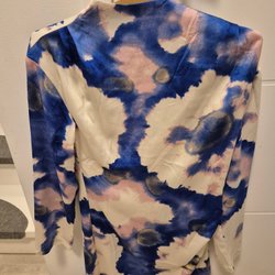 XXL. Söt klänning med blommigt mönster i rosa och vitt. Klänningen har en vit krage och korta ärmar med vita muddar. Säljer utan bälte.