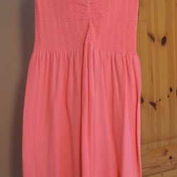 Ärmlös klänning med smock upptill och ett mönster nedtill i blåa nyanser.