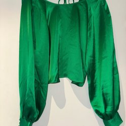 Guldfärgad klänning med v-ringning och långa ärmar. Klänningen har en smickrande drapering i midjan.