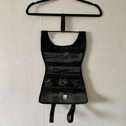 Klänning i svart, storlek L (liten L mer som en M), har en liten krage upptill, skön och luftig modell, använd halvmycket, okej skick.