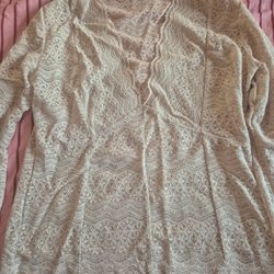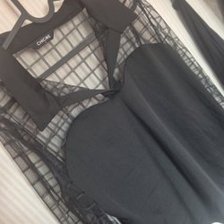 Vit nätklänning med huva och dragsko i midjan. Klänningen har en avslappnad passform och är ärmlös. Dragskon i midjan har guldfärgade detaljer.