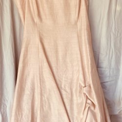 Ärmlös klänning i en ljuslblå nyans. Klänningen har en figurnära passform upptill och en utsvängd kjol. Den har en v-formad halsringning och en dold dragkedja baktill.