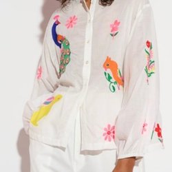 Vit skjorta med långa ärmar och v-ringning. Skjortan har en avslappnad passform.