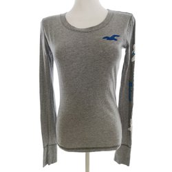 HOLLISTER Blus för Dam Logotyp Blå M Lång ärm Viskos 100% Rund urringning
