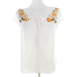KAPPAHL Blus för Dam Spetsbroderi Vit 36 3/4 ärm Bomull 100% Nyckelhålshals