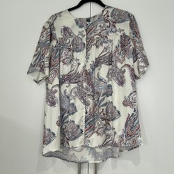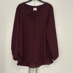 Marineblå top med v-udskæring og korte ærmer. Toppen har en løs pasform.