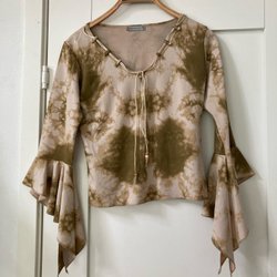 Fin blus i bomull. Går ett tryckfel över bysten och ryggen. Dragkedja i ryggen. Dragkedjan är böjd men funkar.