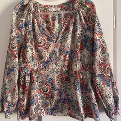 blus med långa ärmar, v-ringning och dekorativa broderier framtill. Blusen har en avslappnad passform och är perfekt för en ledig men stilfull look.