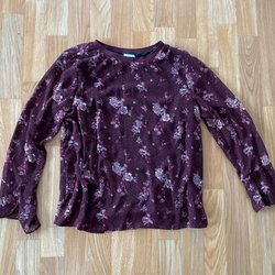 Elegant, tunn crèmefärgad blus med trumpetärm och dekorativa knappar vid axlarna från Saint Tropez. Blusen har en mjuk textur och ett fint fall. Blusen är endast använd en gång. Den är upplagd, då den var längre baktill från början. Tvättrådslappen är bortklippt, då den var skrymmande, men blusen tvättas i 30 grader.