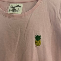 Ljusblå ärmlös blus med v-ringning och tre knappar framtill. Blusen har ett fint hålmönster.