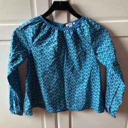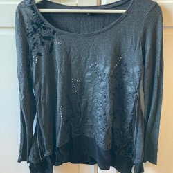 Springfield långtärmad tunt stickad tröja i storlek S. Guldstjärnor som dekoration. Färgen är mörkblå.