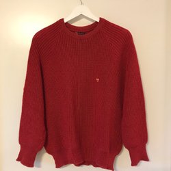 Blå stickad tröja i ullblandning, snyggt geometriskt mönster, vintage, retro