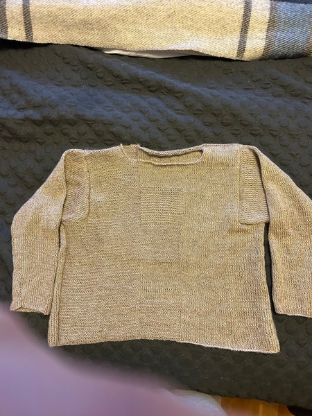Stickad tröja med lång ärm. Tröjan har en fyrkantig halsringning och en avslappnad passform.Tröjan är av Ull ,den mäter fram 43 cm och bak 46 cm och under ärm till ärm 51 cm.Ärmens längd 45 cm.Kommer från ett rök och djurfritt hem .Frakten betalas av köparen .