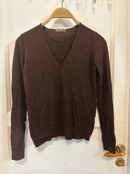 Brun tröja med V-ringning och långa ärmar.