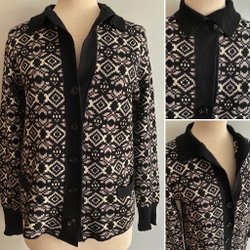 Svart 70-tals vintage skinnkappa med dubbelknäppning, bred krage och spänne vid ärmsluten. Jackan har axelklaffar med knapp och hällor i sidorna, för ett skärp med ca 3 cm bredd. Den är helfodrad, varav översta delen, ner till midjan är lätt vadderad/matelasserad. Den verkar vara sparsamt använd. Finns några mindre märken men på det hela är den i mycket fint skick. Fodret är helt och fräscht. Etikettmärkt: MASENS, Skinnindustri, Malung Sweden. Uppskattar storleken att vara 38/40, M. Se mått nedan.