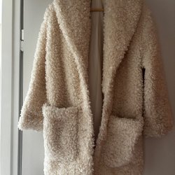 Elegant kappa i en ljus nyans med en unik design. Kappan har en bred krage och dekorativa knäppningar framtill i form av rosetter. Den utsvängda silhuetten ger en smickrande passform och en sofistikerad stil. Perfekt för att addera en touch av elegans till din outfit.