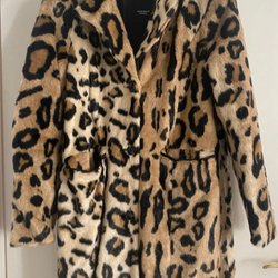 En dubbelknäppt kappa i en varm brun nyans. Kappan har en klassisk krage och slag, samt fickor framtill. Ärmsluten är prydda med knappar, vilket ger en fin detalj. Kappan har en rak passform och slutar vid knäna.