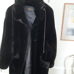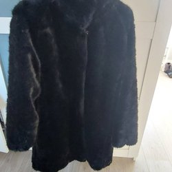 Beige fodrad fuskpäls från Isolde, med luva. Kappan har en mjuk strukturerad yta, två sidfickor och stängs med stora dolda tryckknappar. Mått ; byst ca 120, höft ca 130 och längd ca 92. Stl. 44