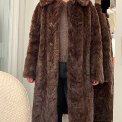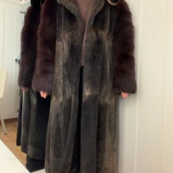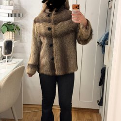 Så fin och varm äkta päls kappa med luva. Osäker på vilken typ av päls. Storlek L-XL (Jag är S)