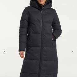 Elegant, dunjacka med ett avtagbart fluffigt krage. Jackan har en dragkedja framtill och ett knytband i midjan för en smickrande silhuett. Den har även praktiska fickor med dragkedja på sidorna och muddar vid ärmsluten för extra komfort och värme.