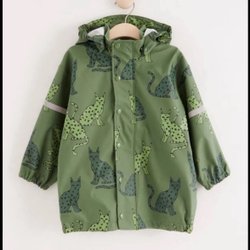 Beige vadderad jacka med dragkedja och tryckknappar framtill. Jackan har två fickor med dragkedja och en avtagbar huva med fuskpäls. Mycket varm jacka
