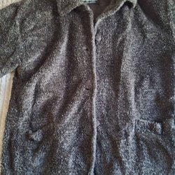 Grå-blå jacka med brun pälsdetalj runt kragen och ärmarna. Jackan har dragsko i midjan och nederkant för justerbar passform. Naturlig päls inuti och utvändigt!!!