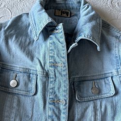 Trendig jeansjacka med en ljus tvätt och slitna detaljer. Jackan har en klassisk krage, knäppning fram och flera fickor.