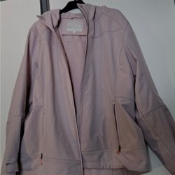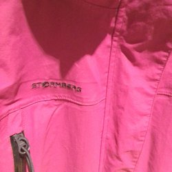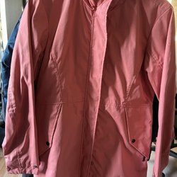 En rosa innerjacka med hög krage. Okänt fabrikat. Två innerfickor, två ytterfickor. Jackan har en liten reva på ena ärmen, annars fint skick. Dragkedjan felfri. 100% polyamid/100% polyester (fyllning)