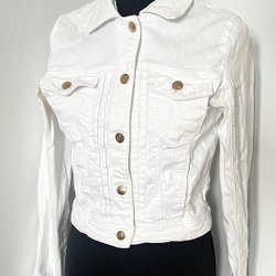 Oversized jeansjacka med lite puffärmar. Väldigt sparsamt använd. Jag är storlek M-L och kan ha denna trots att den är i storlek S.