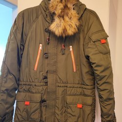 Grön vinterjacka med dragkedja och fickor. Jackan har en avtagbar huva. Storlek xs, från Cubus.