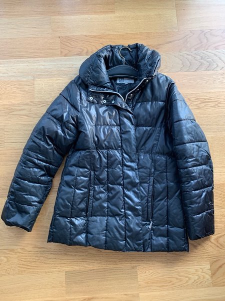 Svart jacka med hög krage och dragkedja framtill. Jackan är i fint skick.