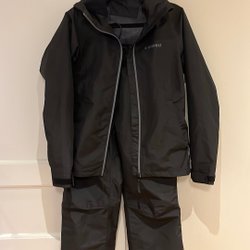 Mörkblå jacka med dragkedja framtill och luva. Jackan har två fickor fram och en justerbar dragsko i midjan baktill. Everest logotypen finns på bröstet.