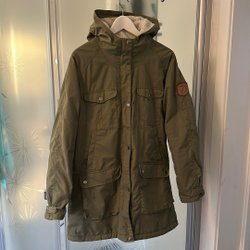 Typ softshell jacka. Använd men i bra skick. Storlek dam XS, längd 54 cm, bredd mätt under ärmhål och rätt över bröstet 40 cm, ärmlängd från ärmhål och ned 51 cm.