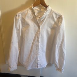 Benvit jacka från Zara Basic stl S med krage och knäppning framtill. Jackan har två fickor fram och en veckad detalj baktill. Ärmarna är långa och raka.
