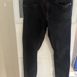 Grå lång tröja S en svart kjol med dekorativa guldknappar S och ett par mörkblå shorts S