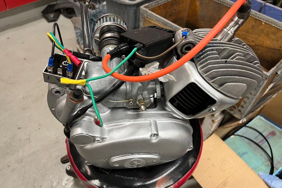3vxl fläktkyld Sachs motor, helrenoverad och utrustad med 41mm cylinder från Nts och ny kolv, 17mm äkta Bingförgasare, elektroniskt tändsystem 12volt. Provstartad och klar att montera.