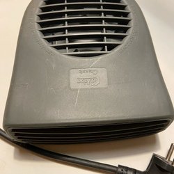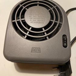 Bra skick, original fäste medföljer, obefintlig obalans i fläkten, värmer bra.