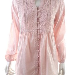 Oavsett om du ska på en middagsdate eller ha en avslappnad dag med vännerna, kommer denna tunika blus att passa perfekt. Den pudriga rosa färgen och de vackra kristallerna ger en touch av elegans till varje outfit.Köp din Guess Storlek L Pudrig Rosa Knäppt Tunika Blus med kristaller idag och uppdatera din garderob med detta unika och stilfulla plagg