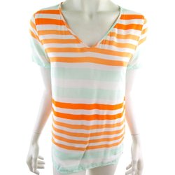 INDISKA Tunikablus Ränder Färgglad M Kort ärm Viskos Djup V-ringning