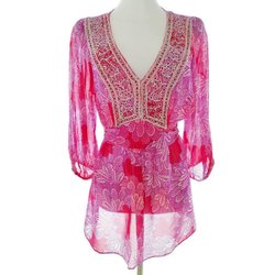 MONSOON Tunikablus Beige M Lång ärm V-ringning
