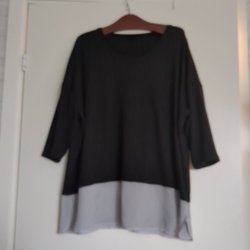 Gråmelerad tunika med rund halsringning och kort ärm. Tunikan har en något längre baksida.