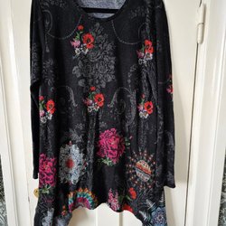 Färgglad tunika med ett intressant mönster och korta ärmar.