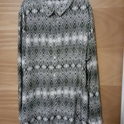 Denna tunika har en v-ringning med knappar framtill och en markerad midja som ger en smickrande silhuett. Ärmarna är trekvartslånga med en knappdetalj vid manschetten. Plagget har en avslappnad passform och en rundad nederkant.