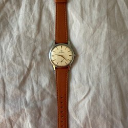 Klockan mäter 35mm ex krona som är original likaså glaset. Verket är Omega cal. 286. Klockan är lätt att dra upp och håller tiden väl.