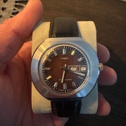 Jag säljer en fin Timex Marlin tillverkad år 1975. Denna klocka från Storbritannienär känd för sin hållbarhet av sin mekaniska urverk. Klockan fungerar helt som den ska och kan gå i flera dagar utan stop med bara några få roationer av kronan (vilket är hur mekaniska klockor fungerar). Armbandet är helt nytt och oanvänt och tillverkad av äkta läder i 20mm bandbredd. Boettens diameter är cirka 36mm (utan kronan) och är plötterad i äkta guld.