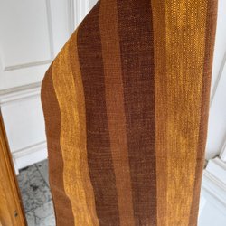 Mönstrad tygpåse, kan stängas med en tryckknapp. Mått 40 x 33 cm